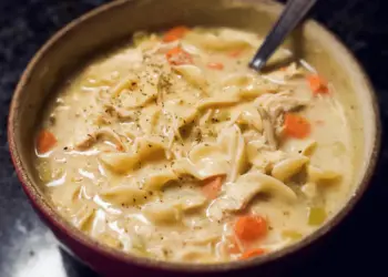 Creamy chicken noodle soup with rice is a comforting classic made with tender chicken, vegetables,…