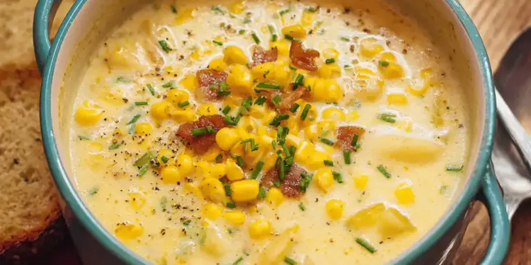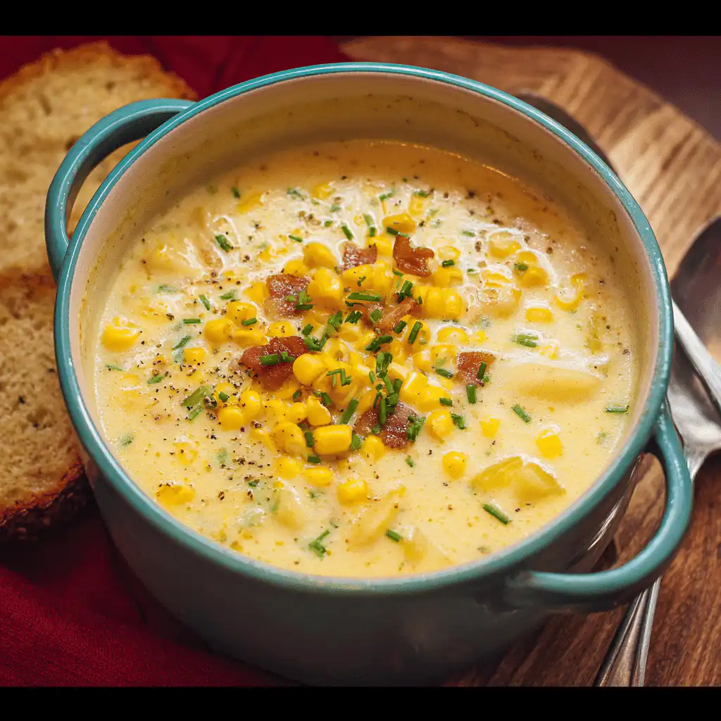 A creamy, comforting corn chowder loaded with sweet corn, tender potatoes, and smoky bacon. This restaurant-quality soup is ready in just 40 minutes and perfect for cozy family dinners.