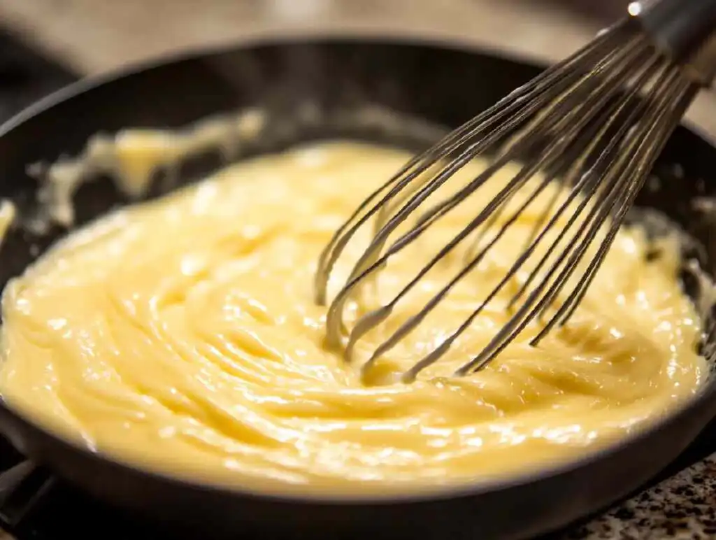 Incorpora la leche a las yemas y mezcla hasta que esté suave y uniforme.